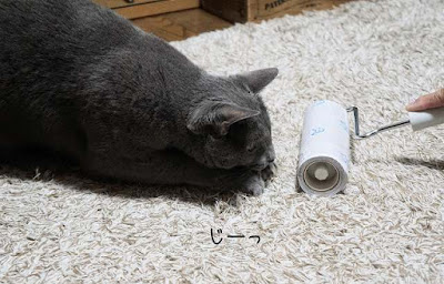 今度は足ぎりぎりで止まったコロコロをガン見!